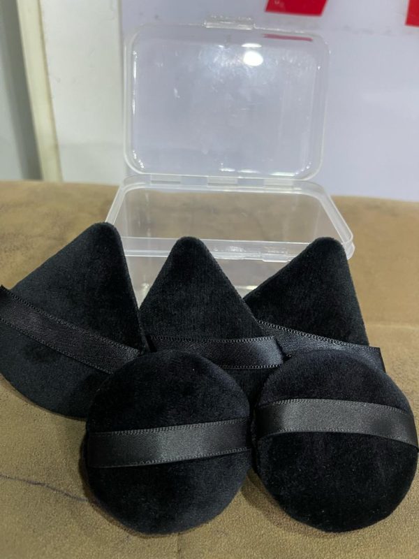 5 in 1 triangle and round puff with case has 3 triangle , 2 rounds and 1 case